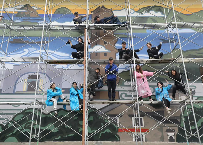 春季下乡#带队手记# “美绘乡村”,壁画一直在行动