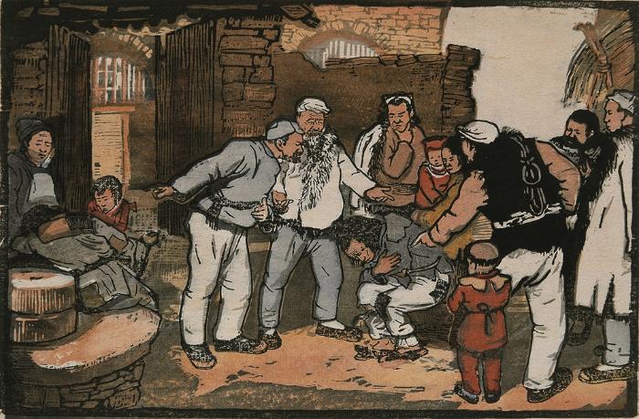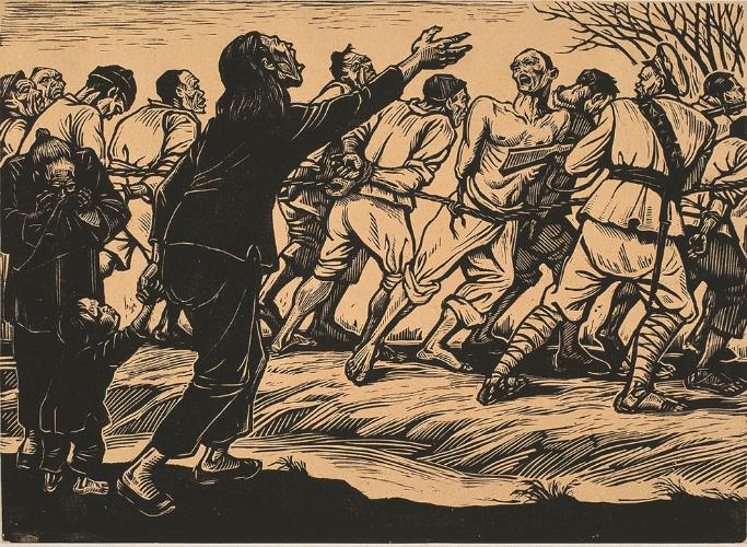 王式廓 改造二流子 17x26cm 1947 套色木刻 beat365在线唯一官网美术馆藏