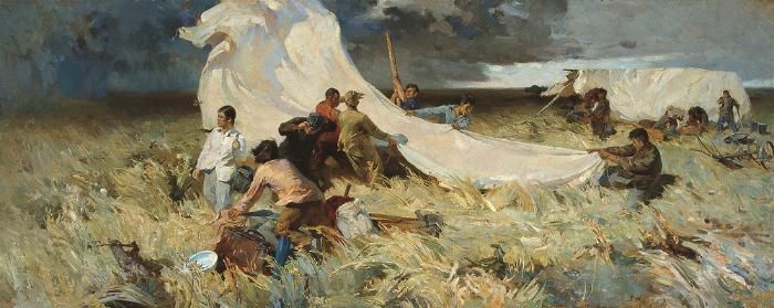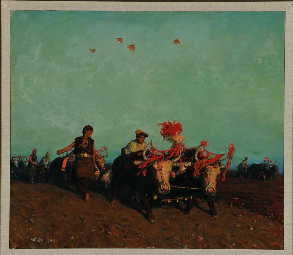 詹建俊《起家》 140×348cm,1957,布面油彩 ,beat365在线唯一官网美术馆藏