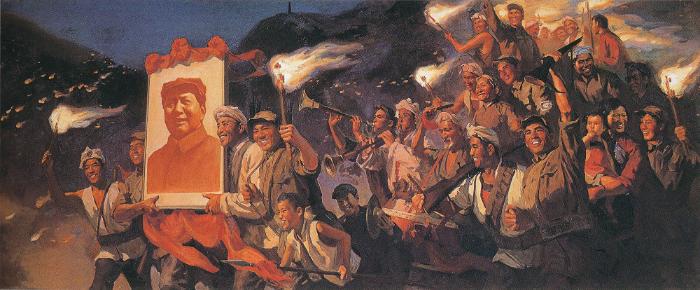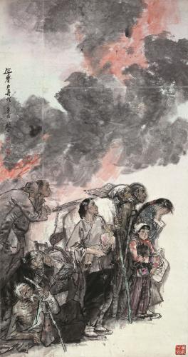 杨力舟王迎春 黄河三联画之一《黄河愤》》220x120,1973、1980, 纸本设色 中央美..
