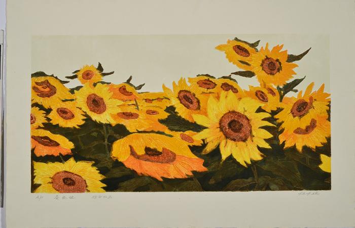 伍必端,《葵花地》,38×68.5cm,1984,胶版套色,beat365在线唯一官网美术馆藏