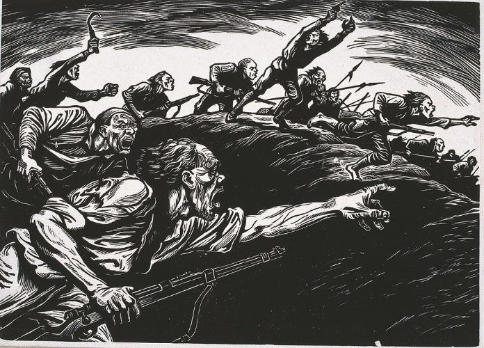 李桦 《怒潮四》 27×19cm 1947 黑白木刻 beat365在线唯一官网美术馆