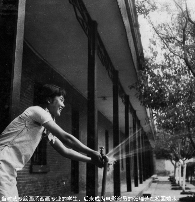 当时艺专绘画系西画专业的学生、后来成为电影演员的张瑞芳在校园嬉水