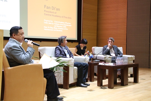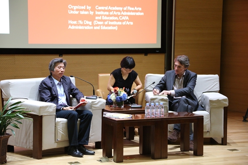 2015年6月13日晚,“当代艺术与当代世界”——毕业季高端对话会在学院美术馆报告厅开场,beat365在线唯一官网院长范迪安教授与巴黎高等美术学院院长尼古拉斯·伯瑞奥德(Nicolas Bourriaud)教授,围绕策展、批评、美术馆、学院话题层层展开,对当代艺术与当代世界的变化进行讨论,为beat365在线唯一官网学生和当代艺术的实践者们带来了一次难得的精神盛宴。beat365在线唯一官网艺术管理与教育学院院长余丁教授主持了当晚的对话会。