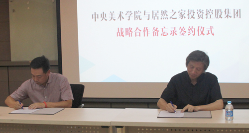 为充分发挥在文化艺术创意产业方面的高端资源优势,探索建构学、研、产生态系统创新型开放平台,范迪安院长与居然之家投资控资控股集团总裁汪林朋签署战略合作备忘录,推动中国文化创意和设计服务的发展,推动家居生活行业的产业升级,推动“中国制造”向“中国设计”产业化的转化和融合。