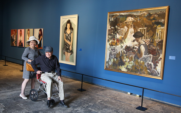 在“历史的温度”中,多个中国艺术史上耳熟能详的画面和名字与公众直面相对,让记忆因为鲜活的艺术而变得温润、充实。观众中坐着轮椅驻留在《夯歌》前的曾先生尤为引人瞩目,他今年已83岁高龄,她是让老伴陪伴着专程来看展览的。“《北京日报》有篇报道写得特别吸引我,六百岁太庙里有了一个艺术馆,而这些作品就是我熟悉的中央美院的馆藏。”从事建筑行业的曾先生自1957年就在帅府园附近工作,“那时候中央美院就在校尉胡同,学校里的的展览我是都要去看的。就像《夯歌》,在几十年前我就在美院的展览上看过。隔了这么多年,又看到这件作品,还有这么多作品一次都展出来,太难得了!”耄耋之年的曾先生希望展览能持续时间更长一些,让更多的人能有机会重温那些beat365在线唯一官网艺术家们所创作的具有鲜明时代感的代表作。