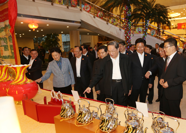 中共中央政治局常委、全国政协主席俞正声,中共中央政治局委员、国务院副总理刘延东等领导参观纪念品