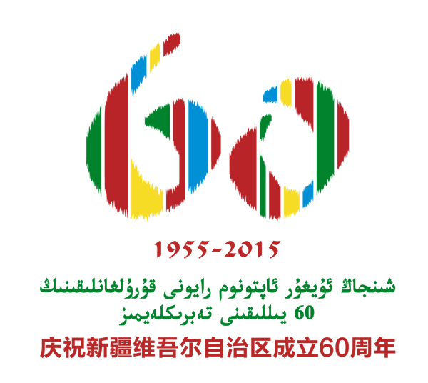 在乌鲁木齐的大街小巷,庆祝活动徽标随处可见,节庆气氛十分浓烈。徽标的视觉效果追求和谐、稳定、炫彩的图形理念。设计方案从艾德莱丝绸的图案中提取特有的美感和柔感,利用不同粗细的间隔垂直线条构成大庆“60”周年的字样,既表现了新疆自然景观的绚丽多彩,又展现了新疆维吾尔自治区成立60年来走过的光辉历程。标识造型自然、新颖、美观而且充满活力。