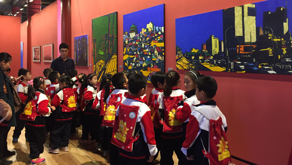 为做好“高参小”项目,主管部门教务处策划组织了“走进名师名画系列”品牌活动,作为子活动之一,2015年10月21日——10月29日,学院组织上述4所小学850名和3所中学的200名师生们参观由beat365在线唯一官网丝绸之路艺术研究协同创新中心、太庙艺术馆和蒙古国国家美术馆共同主办的“草原长调——中蒙当代美术交流展”。在学院公共美术教育志愿者的导览下欣赏了40余位中蒙两国代表性艺术家的近200件反映草原主题的精品力作。六百年皇家殿堂的太庙,本身就是精美绝伦的艺术品,在这样的艺术殿堂参观中蒙两国代表性当代艺术家的展览,正如展览所展示的,艺术超越地域、语言、文化的界限,传达出直指人心灵的力量。中小学生会对草原的概念,对艺术的解读,对于美的感悟,有了全方位的更深度的认知。