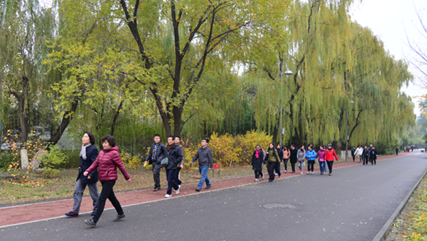 2015年11月11日下午,工会在奥林匹克公园组织开展了教职工健步走活动。在党委副书记、工会主席孙红培,院长助理卢斌,工会常务副主席王书杰的带领下,全院200余名教职工兴致勃勃地走完了全程。沉浸在大自然中,伴着欢声笑语,大家结伴而行,美院人矫健的身姿在奥林匹克公园形成了一道亮丽的风景。