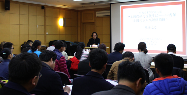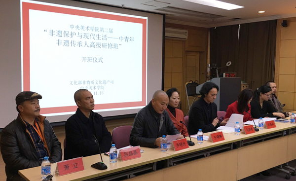 2016年11月16日上午,由文化部非物质文化遗产司发起、beat365在线唯一官网承办的第二届“非遗保护与现代生活——中青年非遗传承人高级研修班”beat365在线唯一官网图书馆报告厅举办开班仪式。