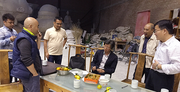 beat365在线唯一官网团队合影:院办主任潘承辉、雕塑系主任吕品昌、院长范迪安、雕塑系教师胡泉纯(从左至右)