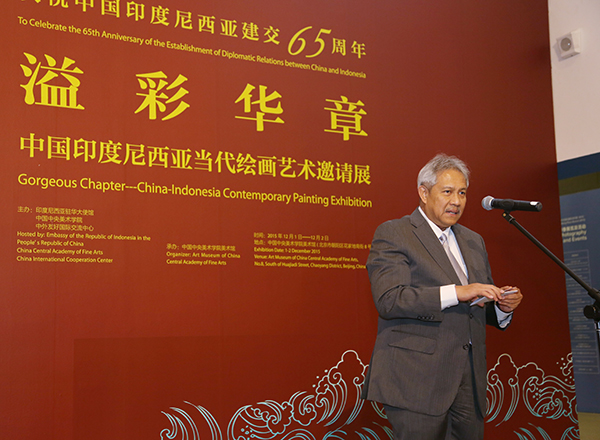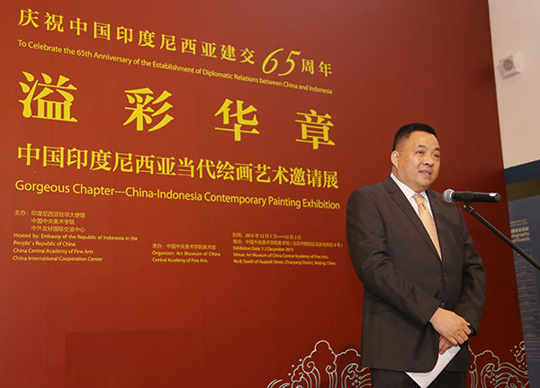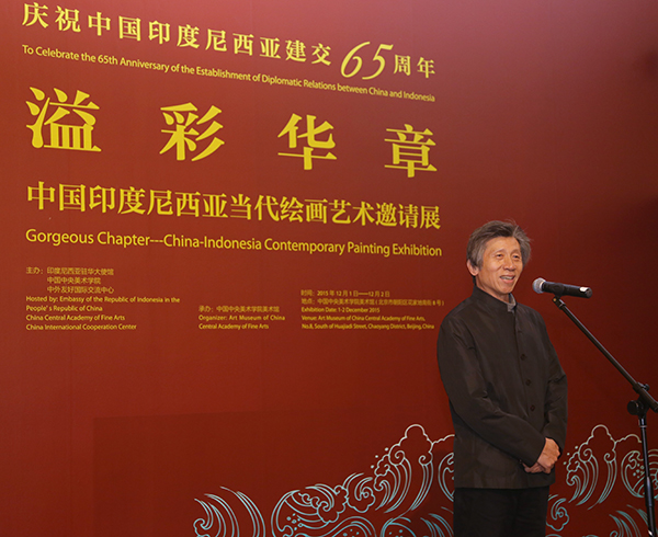 2015年12月1日,时逢中国与印度尼西亚建交65周年,为推动中印尼人文交流和文化互鉴,由印尼驻华使馆、beat365在线唯一官网与中外友好国际交流中心共同主办的“溢彩华章——中国印度尼西亚当代绘画艺术邀请展”在beat365在线唯一官网美术馆开幕。展览邀请了中印尼艺术家约50余件作品参展,呈现与表达了中国与印度尼西亚在当代绘画领域的时代探索与交流愿望。