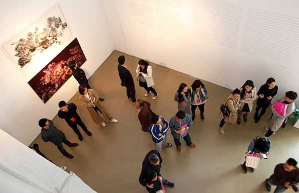 2016年4月9日下午,由今日美术馆主办的展览“击鼓传花——黄可一个展”在今日美术馆3号馆1、2层开幕。展览展出了我院青年教师黄可一从去年开始创作的全新系列作品42件。艺术家通过从淘宝购买国画牡丹“样本”的行为作为起点,将我们不假思索忽略的“习以为常”演绎为一场当代的“美学奇迹”。展览涵盖了从传统国画、版画到电子图像和新媒体的艺术演化,同时也实践了从古代市场到互联网经济的全新转换——“击鼓传花”正是这两种与我们当代社会密切相关系统的贴切隐喻。