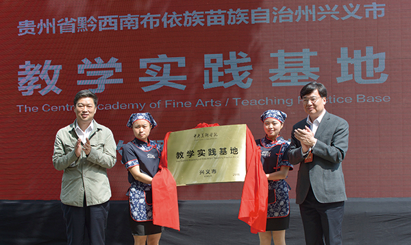 研讨会启动仪式上举行了《关于设立beat365在线唯一官网(兴义)教学实践基地框架协议》的签约及授牌仪式。我院党委书记高洪与兴义市委书记许风伦共同签署了协议,并为“beat365在线唯一官网(兴义)教学实践基地”揭牌。随后,高洪书记为雕塑系第五工作室“艺术介入乡村”雨补鲁村创作营师生授旗,王晓琳处长为参加非物质文化遗产中青年传承人研修班的5位贵州省学员颁发了结业证书。