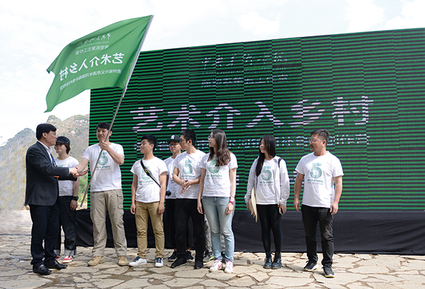 高洪书记为雕塑系第五工作室“艺术介入乡村”雨补鲁村创作营师生授旗