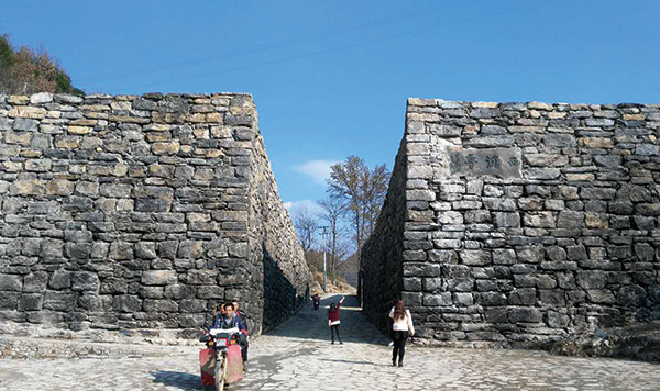 地景式寨门设计,利用几百米外拓路废弃的石头修建的寨门