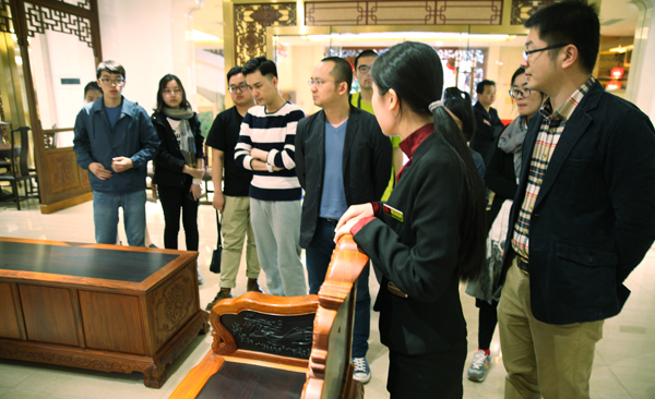 针对此次调研,13位研究生同学带着已预先反复准备和讨论的课题“文化产业如何促进地方传统文化的当代转型”实地调研了工艺油画、古典红木家具、石艺雕刻这三大仙游代表性工艺美术行业的发展历史和现状,在积极搜集和整理当地文化和产业发展状况一手资料的同时,也努力将各自所学专业知识应用于实践考察,从仙游的历史文脉传承、地方文化产业发展规划、相关行业发展现状等不同角度入手,根据实地调查、走访、问询的情况,分析、总结出积极有效的经验和成果,梳理、查找尚存的困难与问题,旨在尝试为当地文化产业的发展与转型建言献策。
