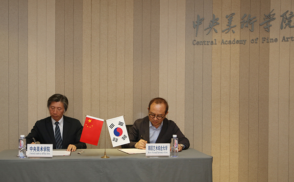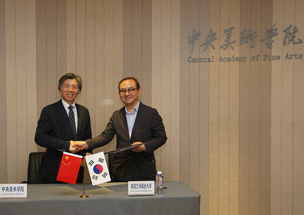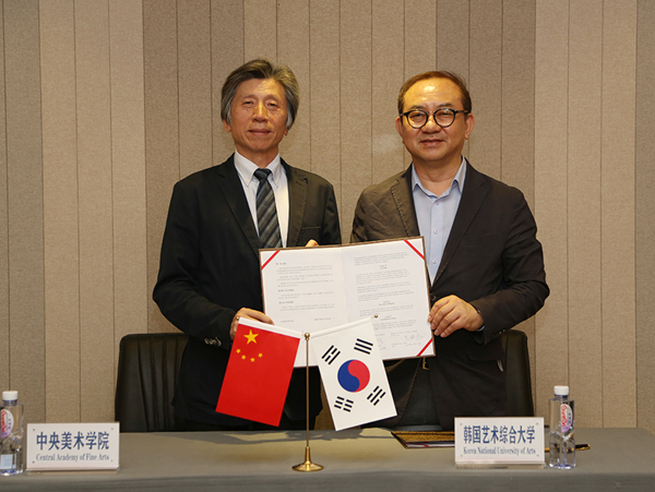 会见最后,范迪安院长与金奉烈校长签署了两校合作与交流备忘录。