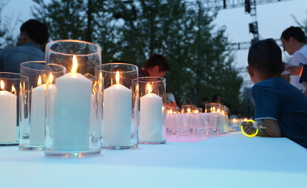 暮色缓缓降临,银杏树下,绿草坪间,60米长的白色烛台点亮,曼妙的灯光秀投射来迷人的色彩,“2016中央美院毕业季”在五彩斑斓中点亮。
