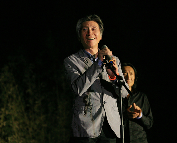 晚八时许,树林尽头有些凸起的草地在绚丽的光影中亮起来,就在这里,这里是今晚的舞台,是毕业生的舞台。