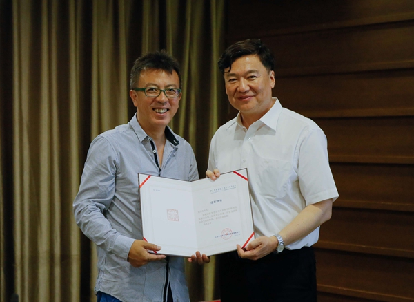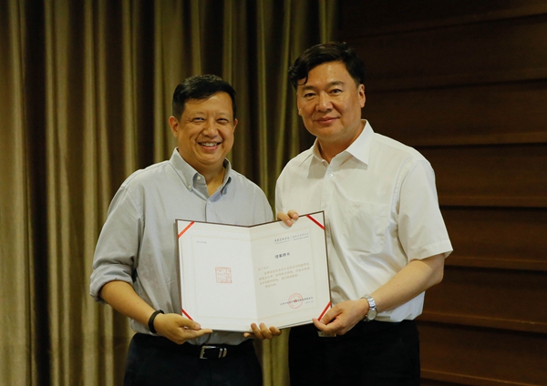 基金会第二届理事会理事长高洪向新一届理事会理事颁发聘书