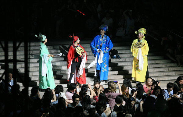 地面水书法、巨型欢乐泡泡、街头艺术嘉年华游行、广场音乐会、摇滚乐池、皮影戏、古装剧、人文哑集……独具美院范儿的集装箱表演,让这个夜晚延续着激情,欢乐。