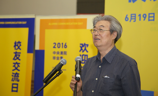 院长范迪安向校友们汇报了美院过去一年来的工作。他从“完善学科建设与调整专业结构”、“传承美院文化与弘扬优秀传统”、“加强学校与社会创新联系”、“提高国际交流的水平与层次”、“丰富教学创作与研究成果”等方面呈现中央美院在努力推动学校的内涵建设和全面发展的成果。范迪安指出,“其中让人感动的是,校友们对学校的拳拳关爱之心,因此我们有理由,也有信心把工作做得更踏实。”