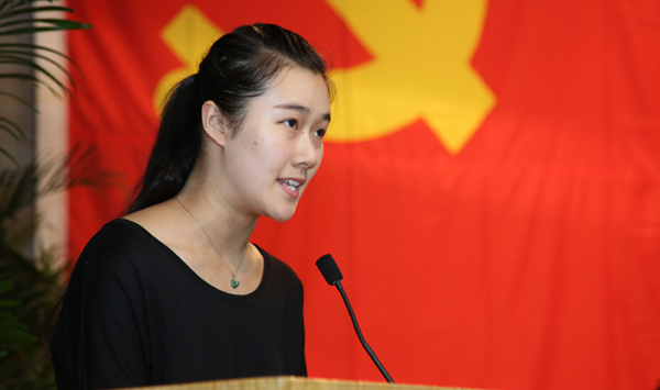 设计学院教师党员林存真、造型学院学生党员徐乙宁作为“优秀共产党员”代表先后发言,从各自的教学创作、学习生活体会出发,表达了对党员身份的认识和发挥党员作用的感受。