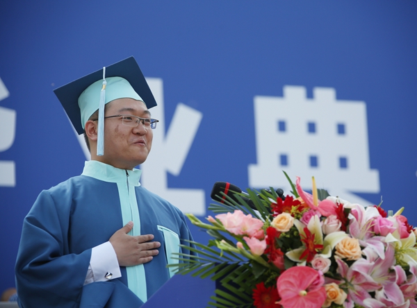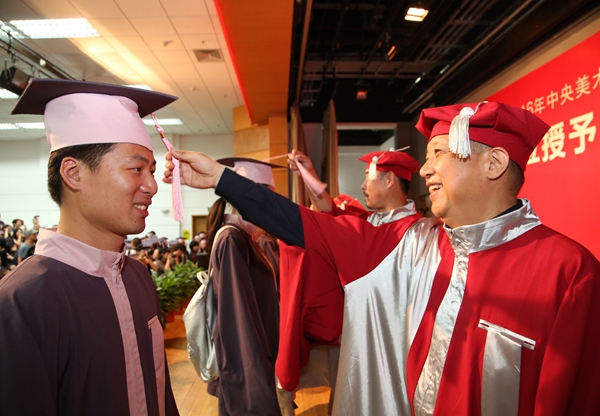 “在美院生活久了,真会发现美院是一个神奇的地方,因为在这里会不期而遇许多神奇的事儿。在这里,不会感到自己的天性被压抑,只要想,每个人都有机会在自己喜欢的地方发声。”城市设计学院邓展坤代表毕业生,说出身为美院学子的自豪。