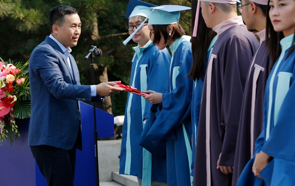 党委书记高洪向优秀毕业生代表颁发荣誉证书