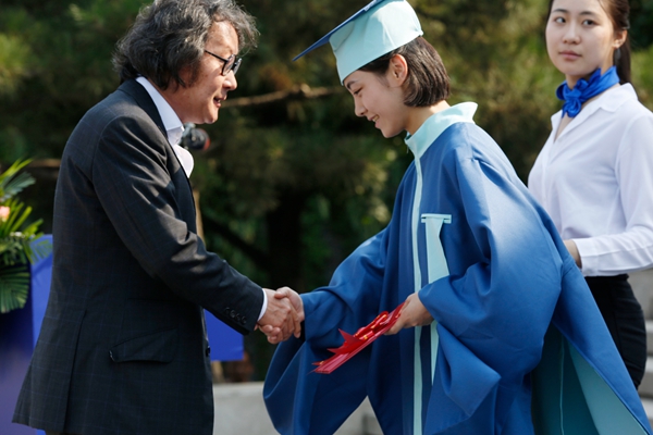 范迪安向毕业生代表颁发毕业证书
