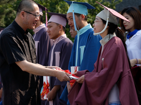 范迪安院长为全资捐助今年学位服的金恒德集团有限公司董事长周金法先生颁发捐赠证书