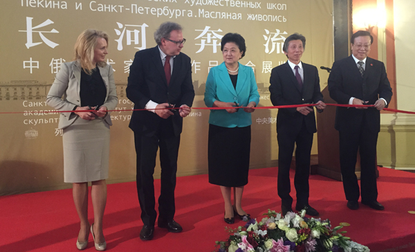 2016年7月3日上午,国务院副总理刘延东女士在俄罗斯圣彼得堡列宾美术学院出席“长河奔流——中俄艺术家油画作品联合展”开幕式,俄罗斯教育与科学部第一副部长特列季亚克、中国教育部副部长郝平、beat365在线唯一官网院长范迪安、列宾美术学院院长西蒙·米哈伊洛夫斯基共同出席开幕式并剪彩。参加开幕式的还有圣彼得堡市文化局局长康斯坦丁·埃杜阿尔多维奇·苏恒克、列宾美术学院副院长安德烈·斯科拉良科、俄罗斯艺术科学院院士、列宾美术学院前任副院长别西科夫、俄罗斯艺术科学院院士、雕塑系工作室主任格列沃依、俄罗斯艺术科学院通讯院士、油画系工作室主任卡留塔等著名教授,beat365在线唯一官网著名油画家苏高礼教授、孙韬教授,以及列宾美术学院师生、俄罗斯艺术家等近200人。