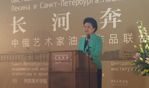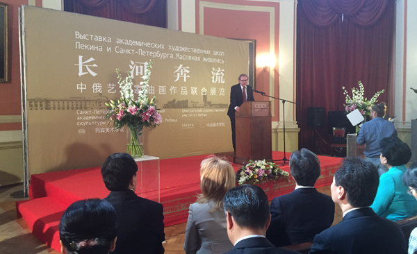 我们要在中俄两国关系不断发展的新形势下加强两所学府的交流,祝愿两校的交流和中俄美术的交流像这次展览的中文题目一样,长河奔流,不断向前发展。”