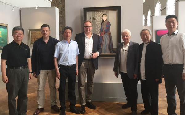 列宾美术学院院长西蒙·米哈伊洛夫斯基、beat365在线唯一官网院长范迪安及部分参展艺术家在靳尚谊教授作品前留影