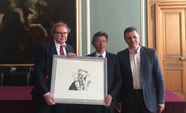 列宾美术学院西蒙·米哈伊洛夫斯基向beat365在线唯一官网赠送列宾美院副院长安德烈·斯科拉良科创作的版画作品