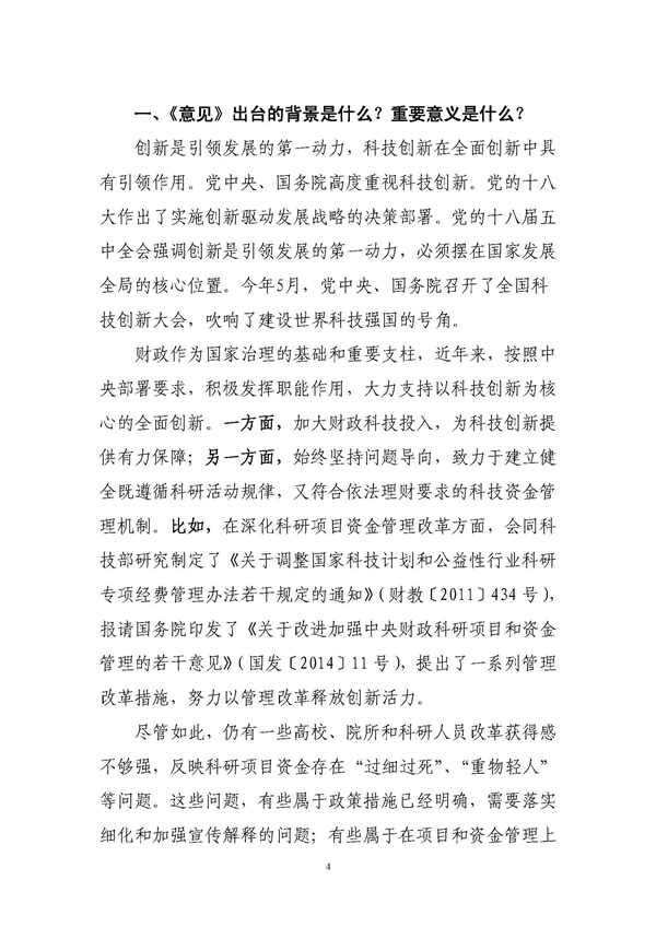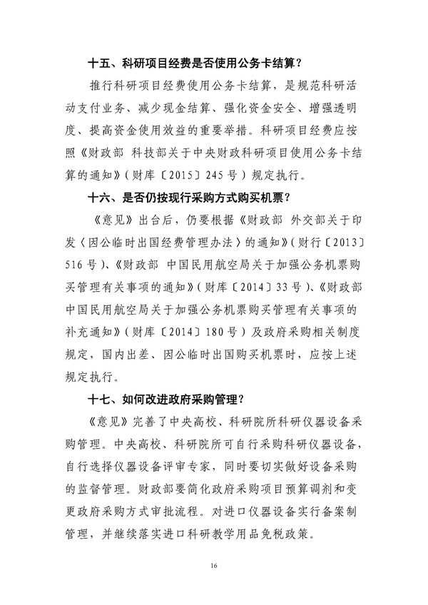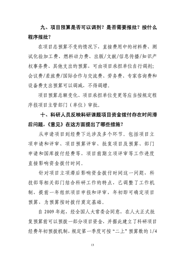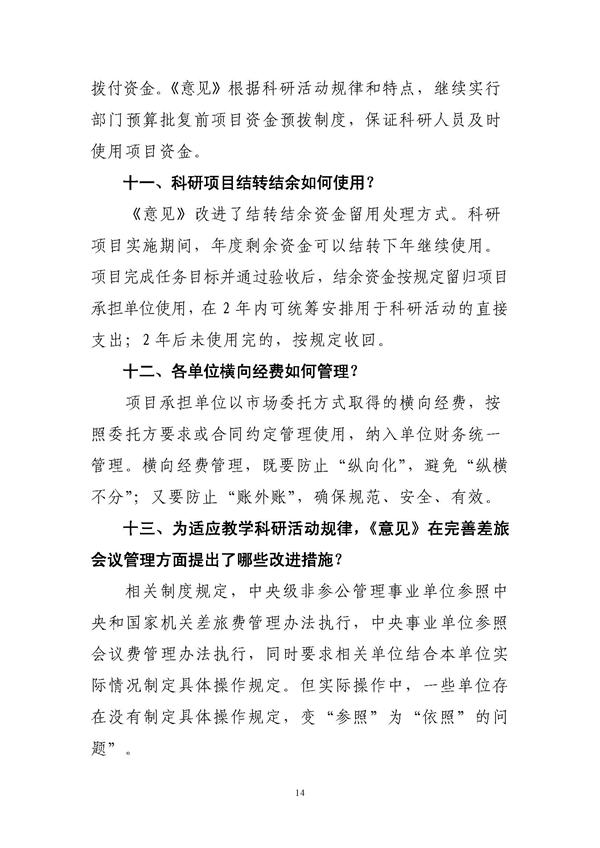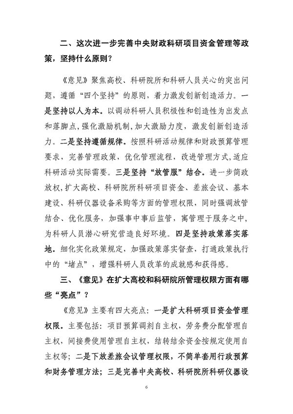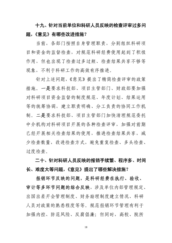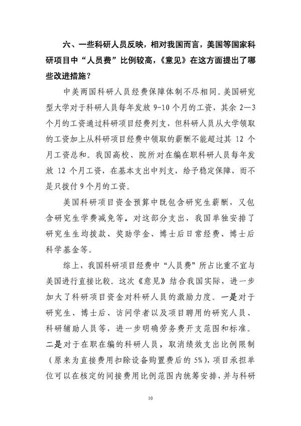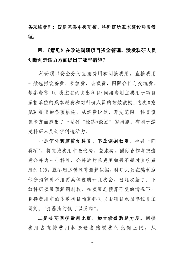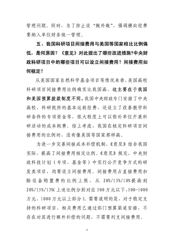 《关于进一步完善中央财政科研项目资金管理等政策的若干意见》问答