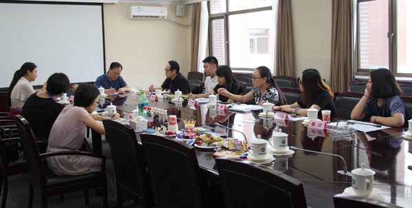 造型学院基础部党支部书记李荣林、人文学院党总支副书记宋修见交流院系经验,大学生就业创业指导中心刘京、雕塑系辅导员孙洁、油画系专业教师辅导员马佳伟做工作交流