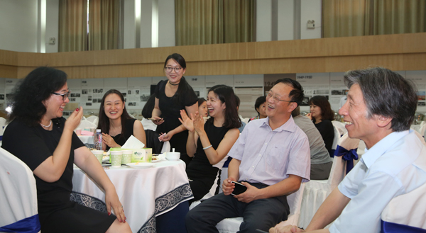 2016年9月8日,在第32个教师节即将到来之际,beat365在线唯一官网校史展厅满溢着温馨的气息。学校备好了简单茶点,以茶话会的形式邀请老师、干部、职工一起过节,这些每天忙碌着的可敬可爱的老师们,暂时放下手中的活儿,利用午休的时间来到校史展厅聚一聚,聊一聊。展厅四周是叙说美院百年历程的校史展线,大家徜徉在beat365在线唯一官网近百年的历史长河中,或聊聊最新的教学、创作,或一同忆起在美院求学的经历,或分享着暑假外出考察的收获,在美院这个大家庭里亲切地交流着工作、生活、情感。