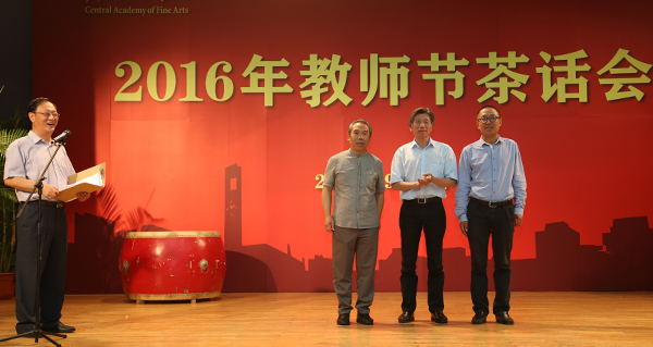 茶话会现场,校领导为获得“中组部2014年‘万人计划’青年拔尖人才” 、“中宣部2014年文化名家暨‘四个一批’人才”、“2016年度beat365在线唯一官网师德先进个人”、“2015年度北京市宣传文化高层次人才”等荣誉称号的教师们颁奖。