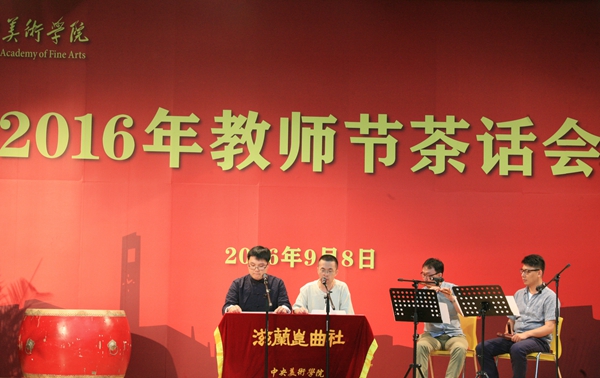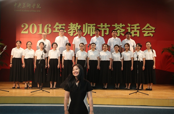 “一切的现在都孕育着未来,未来的一切都生长于它的昨天。” 台上,美院的师生展现着专业外的特长,诗朗诵、合唱、昆曲、民乐合奏,声声悠扬,台下老师们说着、笑着,分享着属于大家的节日。