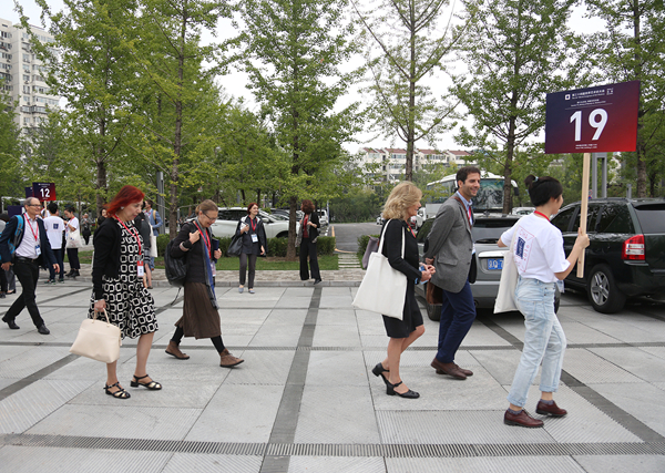 参会代表在志愿者引领下进入各个分会场