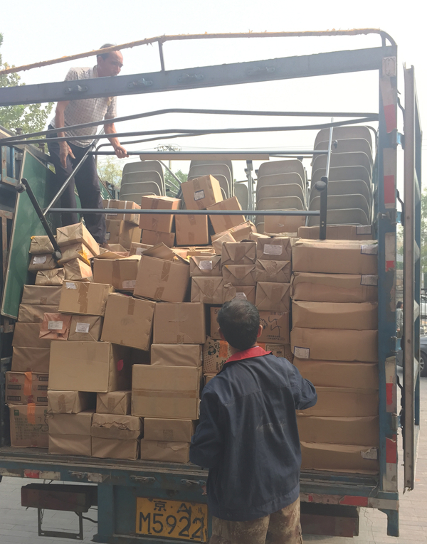 目前承载着美院师生爱心的图书及beat365捐赠的课桌椅已经运抵剑川。