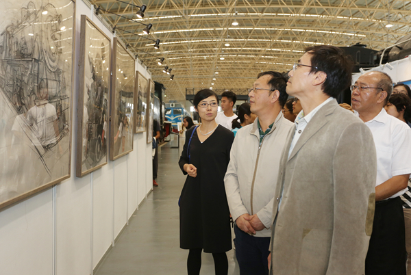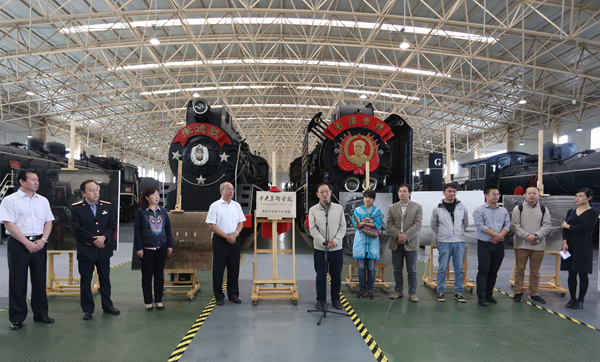 揭牌仪式结束后,与会领导和美院师生一同参观了中国铁道博物馆东郊展馆室内外展区,并对如何更好地利用博物馆资源创作出更多的艺术精品进行了交流。
