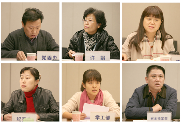 党委办公室、组织部、宣传部、纪委办公室、学生工作部、安全稳定工作部负责人发言