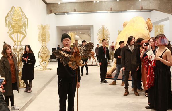 范迪安院长在开幕式致辞中对邬建安丰沛的创作力表示了肯定,“邬建安创作了多少作品,展出了多少作品,还有多少作品特别是草图,都是难以估量的数目。”谈及这位优秀的青年艺术家,范迪安认为:“邬建安沉浸在一个有自身内在逻辑的世界之中,这个世界和远古的神话世界相连,和民间的传奇相连,也和他自己接触的大量的具有原始生态的艺术形式相连。因而,传统的、民间的、本土的很多文化基因,特别是视觉思维的方法,已经融化在他的整个思想结构和创作方式中,这是一个艺术家不断成熟并不断走向精进的体现。”