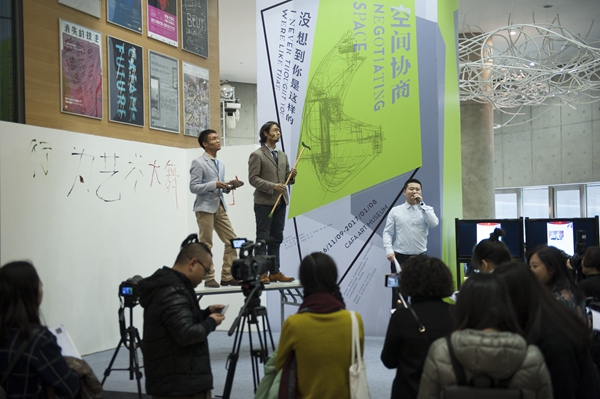 协调员刘希言则从展览提出的“空间”概念出发,阐述了空间在物理、社会、心理等多个层面的多重概念,并指出本届双年展在“空间协商”即遵循“为方案协商空间”这一原则上的特殊方式。在此基础上,真正实现本此展览对“民主”策展的实验。