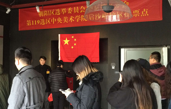 15日清晨,尽管天气寒凉,但是后沙峪校区一号楼大厅内外聚集了众多城市设计学院师生,气氛热烈,这里被设为该校区的投票点。