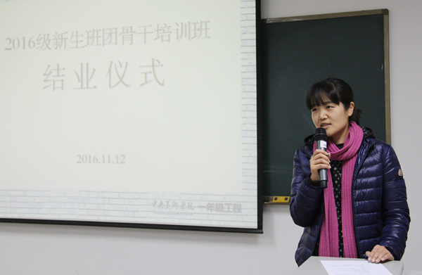 新生班团骨干培训得以顺利开展,离不开学校各级领导的高度重视以及学生工作部、各院系辅导员、班主任等老师的大力支持。在结业仪式暨班级活动的展示环节上,各院系辅导员纷纷与同学互动,针对班团建设与同学们分享经验。学生工作部部长郭丽在总结发言中希望同学们成长为思想好、学习好、工作好、身体好、群众基础好的“五好”干部;努力成为好人、能人和强人。同时,希望通过本次“培育—评议—展示”的工作模式,使各班级建设实现有特色、上水平的愿景,继续为同学们的大学生活营造良好环境。
